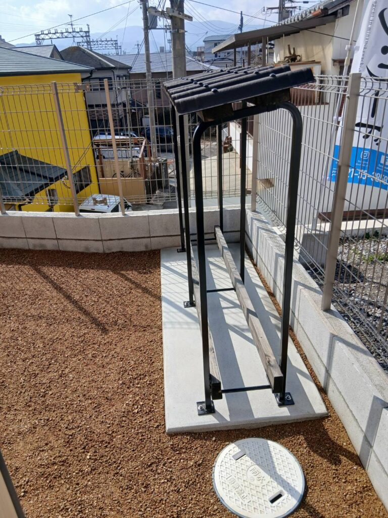 薪炉に使う薪を置く薪ラックも2か所設置しております!
