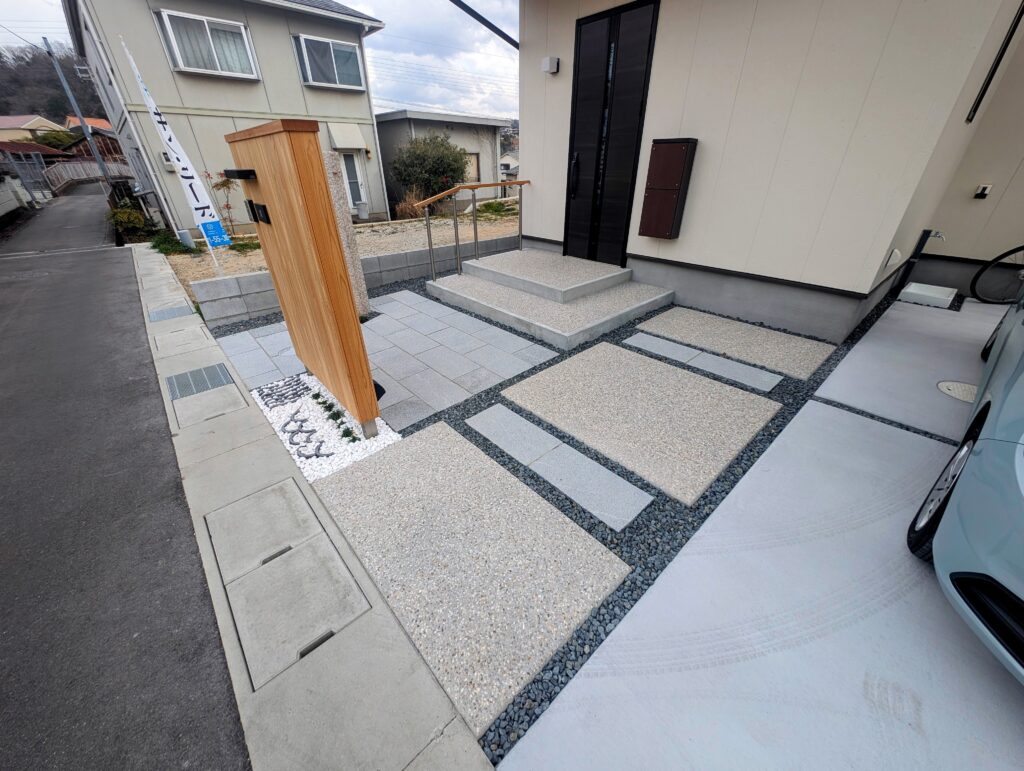 玄関ポーチやアプローチの一部は洗い出しにしてもらっております。